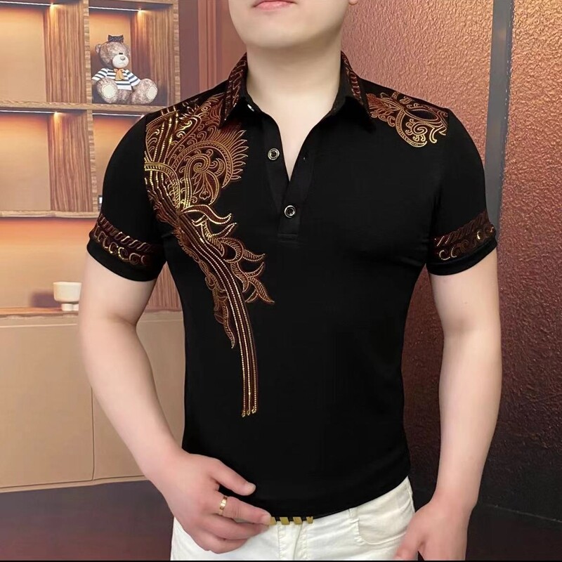 【金箔フライングウィング】夏用ポロシャツ 高品質 ハンサム メンズ 万能ラペル トレンド ビジネス スリム ネットセレブ