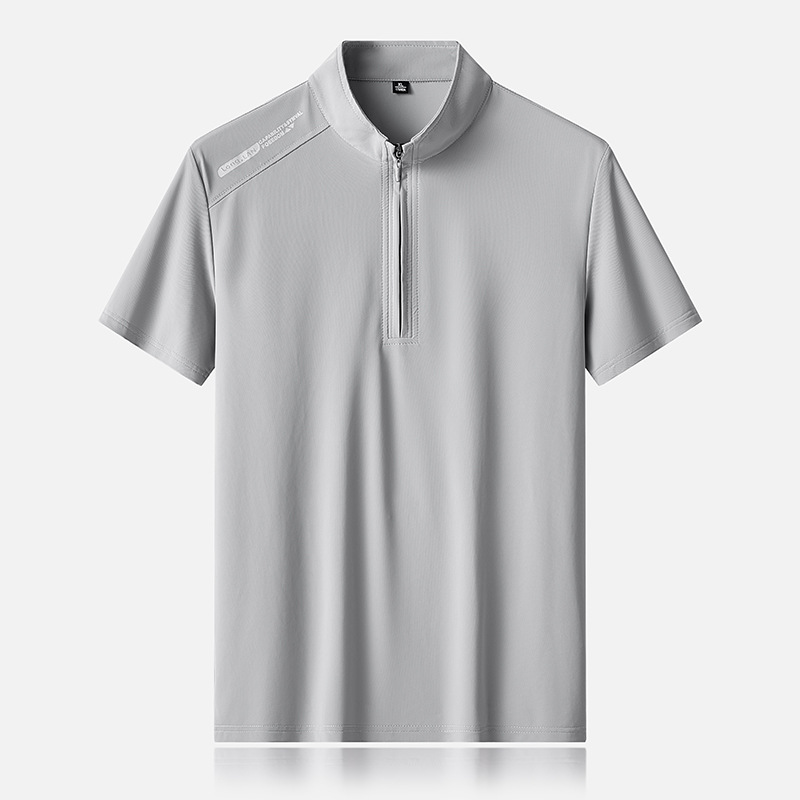 夏の氷糸立襟半胸ファスナー半袖tシャツ男性薄い通気性カジュアル襟半袖poloシャツ上着