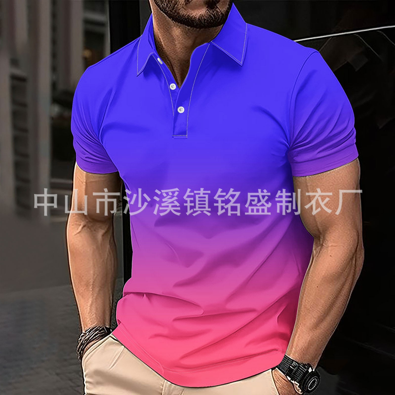 夏のスポーツ男性速乾poloシャツデジタルプリントゆるい通気性カジュアル襟氷糸半袖tシャツ男