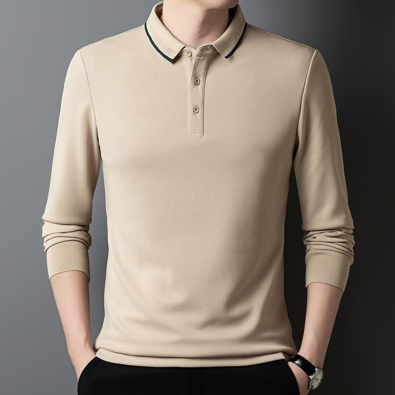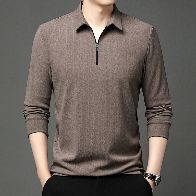襟をめくる軽熟ビジネス半ファスナーpoloシャツ男性春秋新作男性長袖中青年カジュアルシャツ