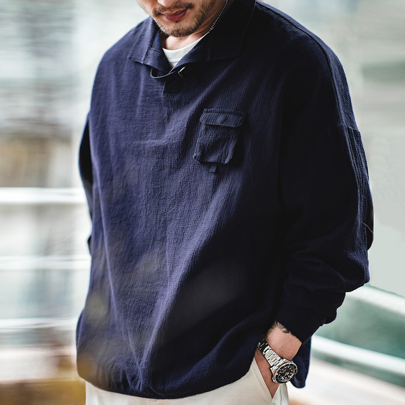 マデンワークウェア 日本風レトロな質感のポロシャツ メンズ 綿100% 襟付きシャツ ゆったりシルエット 長袖 秋