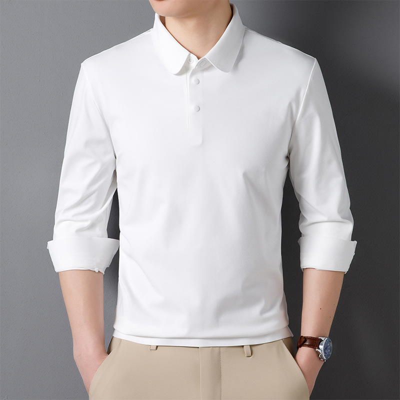 【無痕高弾力】錦アンモニア長袖poloシャツ男性無料ビジネスカジュアル純色襟tシャツメンズ