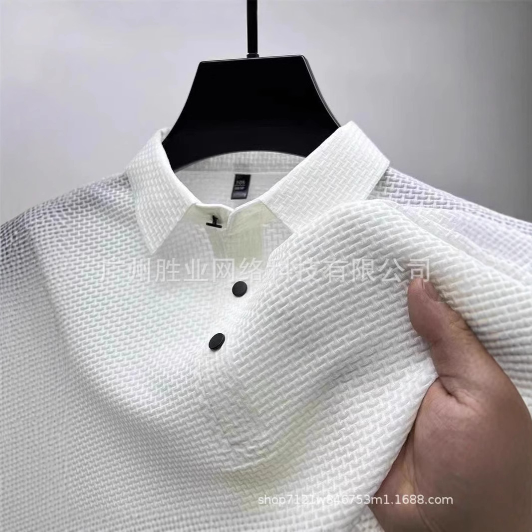 メンズアイスシルクシームレス薄手クールライト高級半袖ビジネスカジュアルスリムラペルTシャツポロシャツ夏