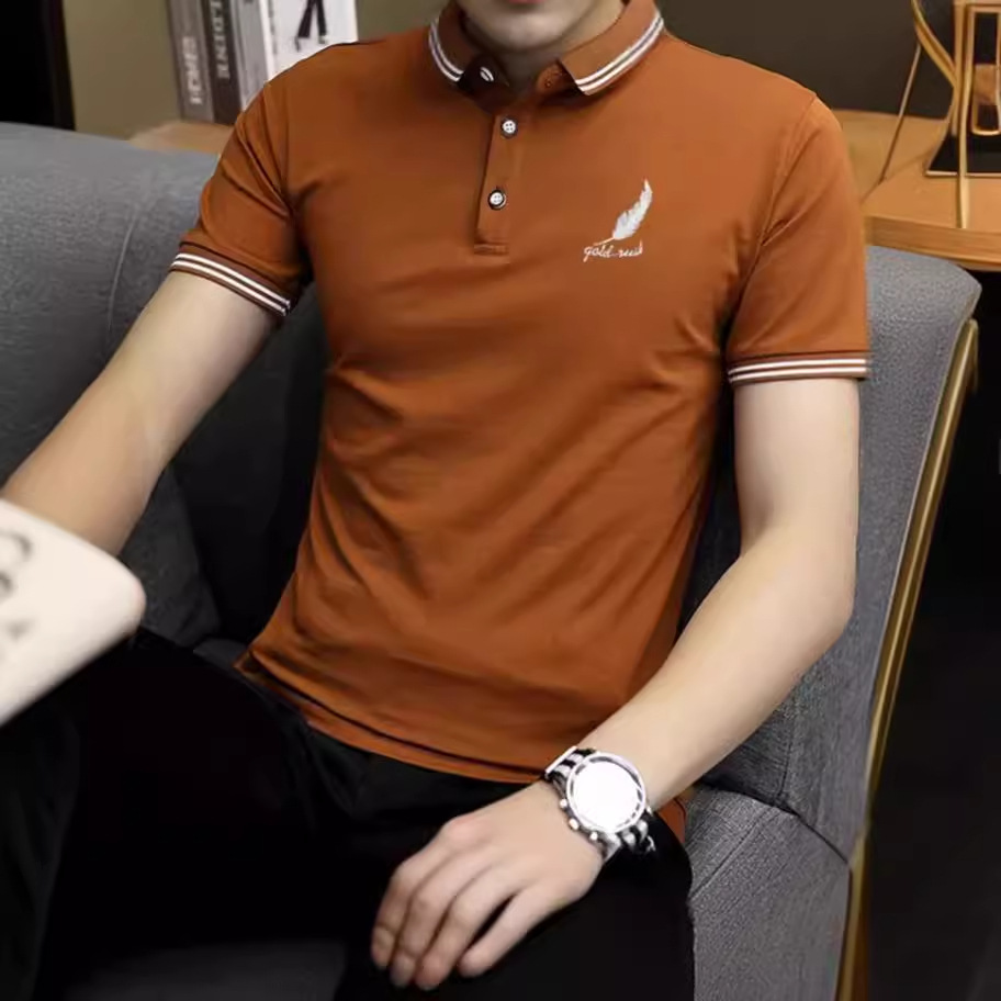 夏の男性半袖tシャツ刺繍襟poloシャツ男性カジュアル高級百合ゆるい半袖上着男性