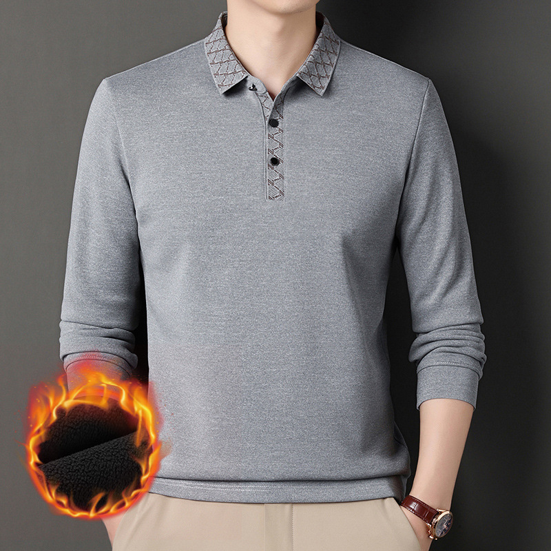 冬の男性の長袖の襟のベルベットのポロシャツのファッションの中年の男性の上着の超柔らかい綿毛の保温tシャツ