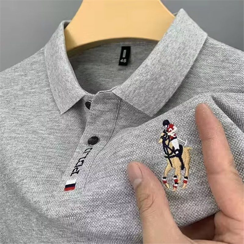 国境を越えた貿易紳士服小麦ポニーマーク刺繍ピケコットンラペルビジネステシャツポロシャツ半袖コレクショントレンド