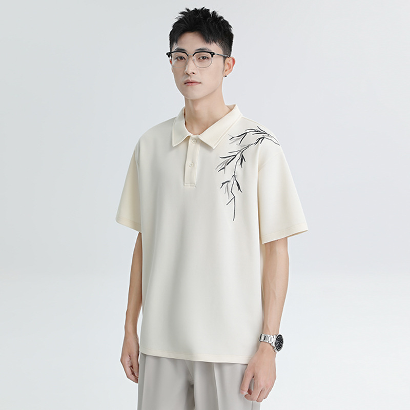 2025年夏新作 新中式刺繍 国風デザイン ラペルポロシャツ メンズ 半袖 カジュアル トレンドTシャツ