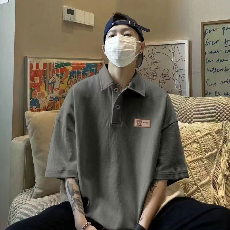 2025春夏の新型重ポンドpoloシャツ半袖tシャツ男性ゆるい大サイズ潮牌襟半袖tシャツ