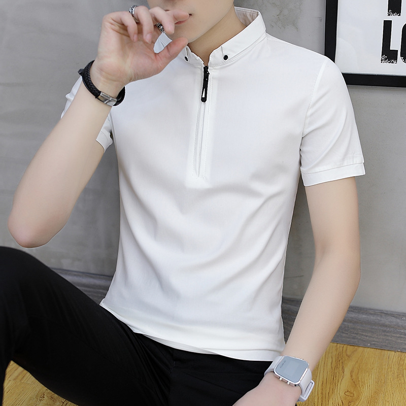 高級軽贅沢半ファスナー修身半袖襟付きtシャツ男性カジュアルビジネスごろつき半袖tシャツ上着紳士