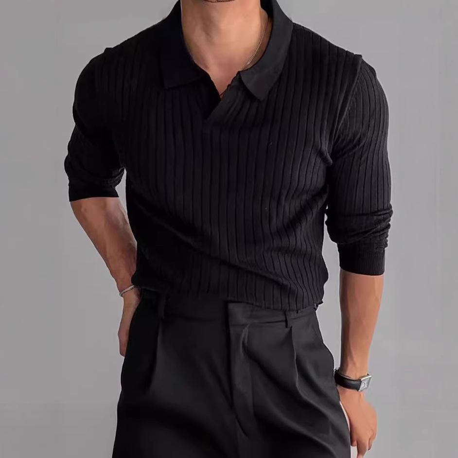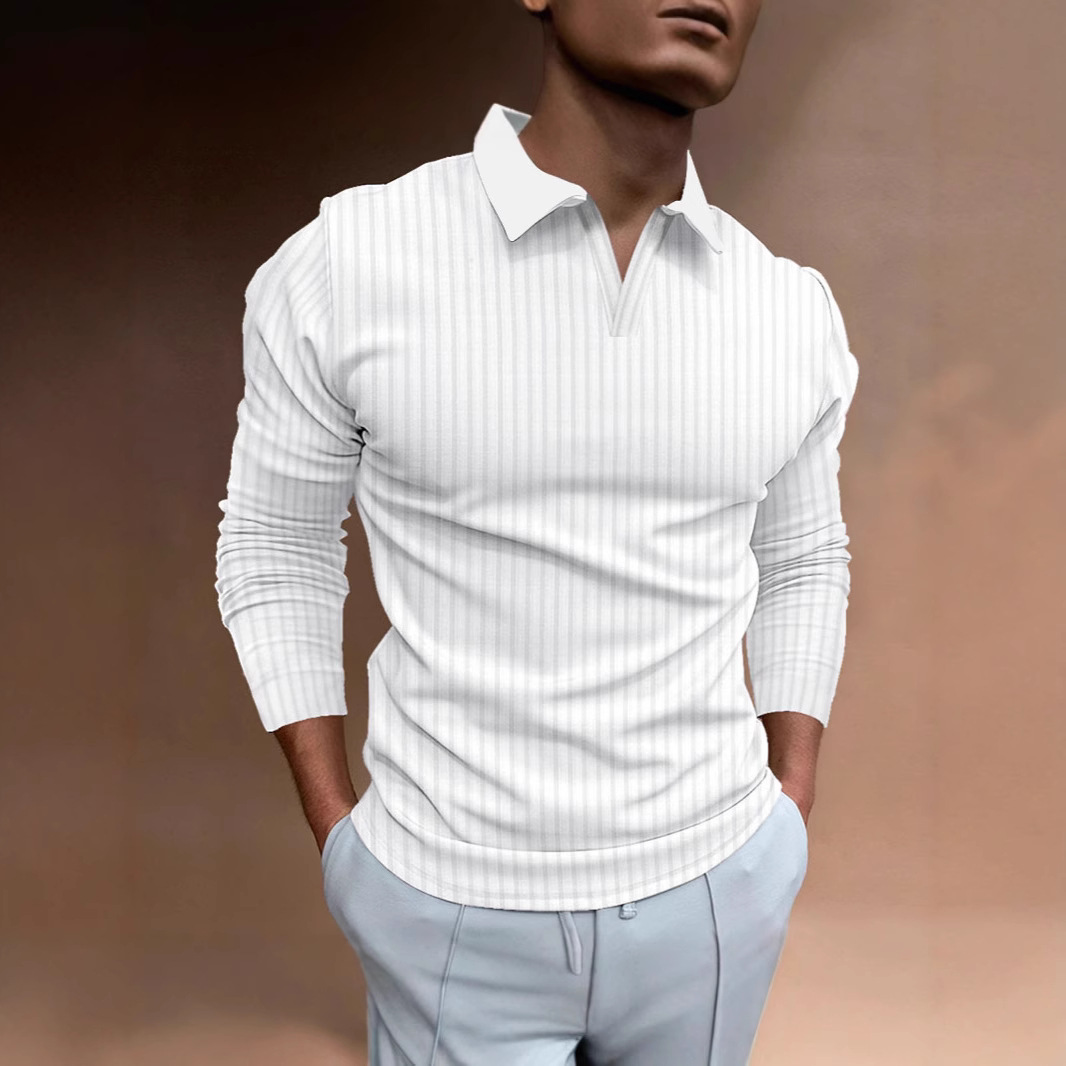 メンズポロシャツクロスボーダーヨーロッパとアメリカのウィッシュ貿易秋フィットネスカジュアルスタンドカラー長袖縦ストリップVネックポロシャツ