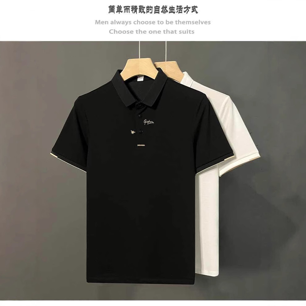 折り襟poloシャツカスタム高級感印ロゴ刺繍半袖tシャツ夏純色通気文化シャツ男性