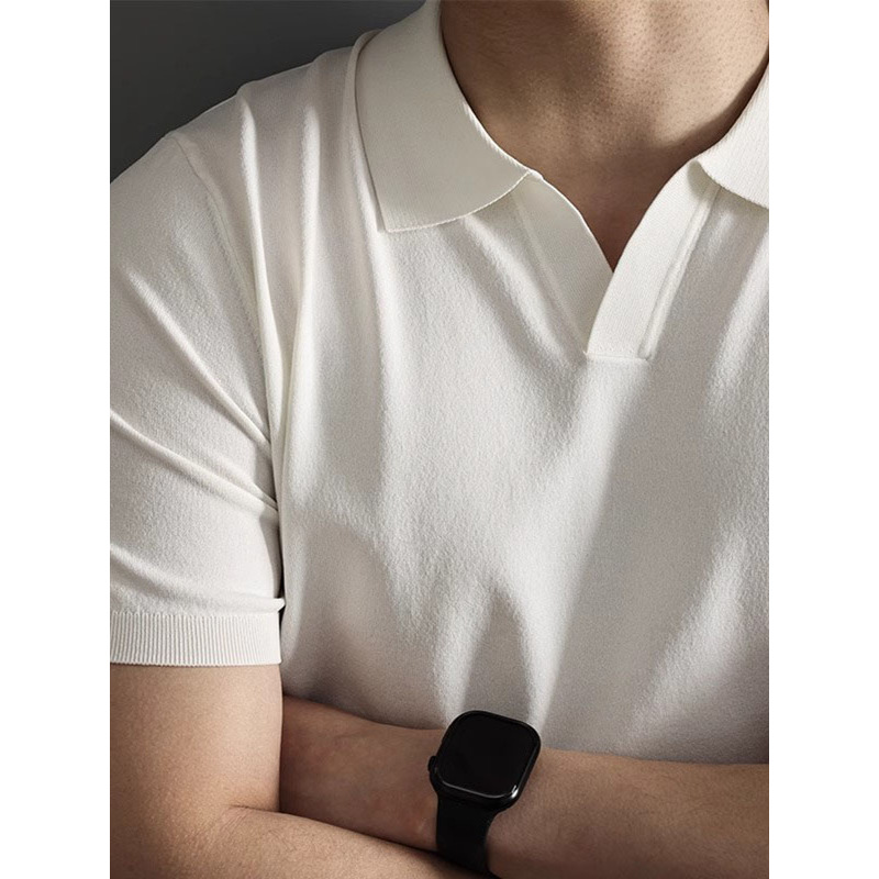 メンズアイスシルクシームレス薄手クールライト高級半袖ビジネスカジュアルスリムラペルTシャツポロシャツ夏