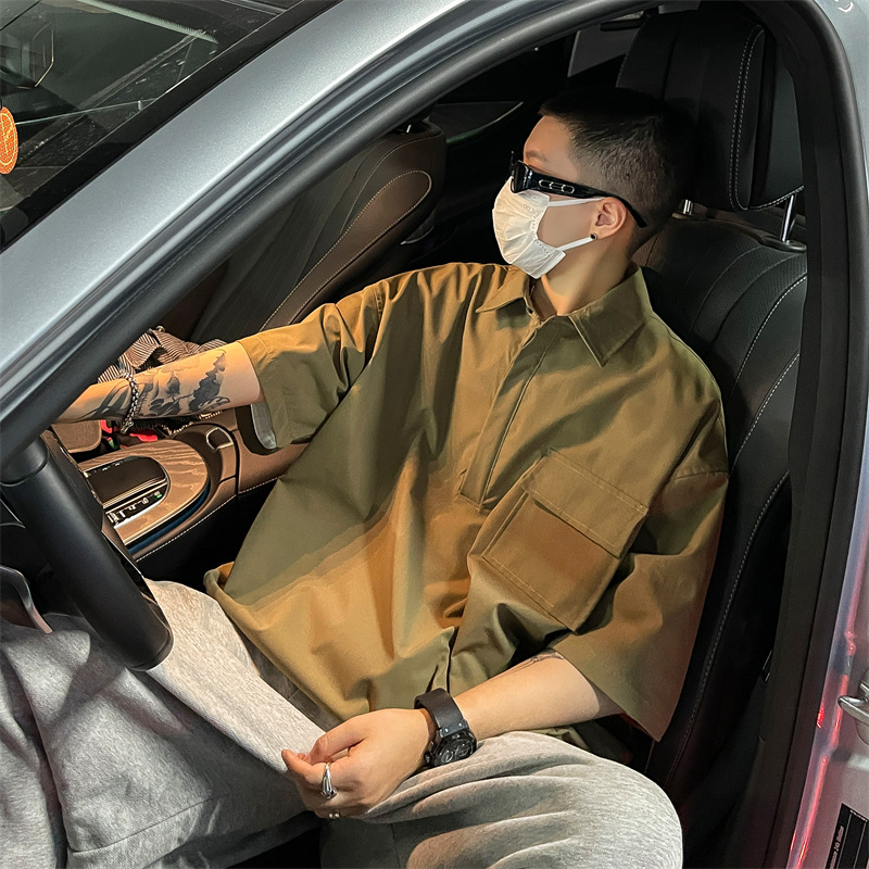 Poloシャツの男性の夏の新型ファッションブランドins香港風日本式半袖tシャツのゆったりとした襟をめくって服を着ます。