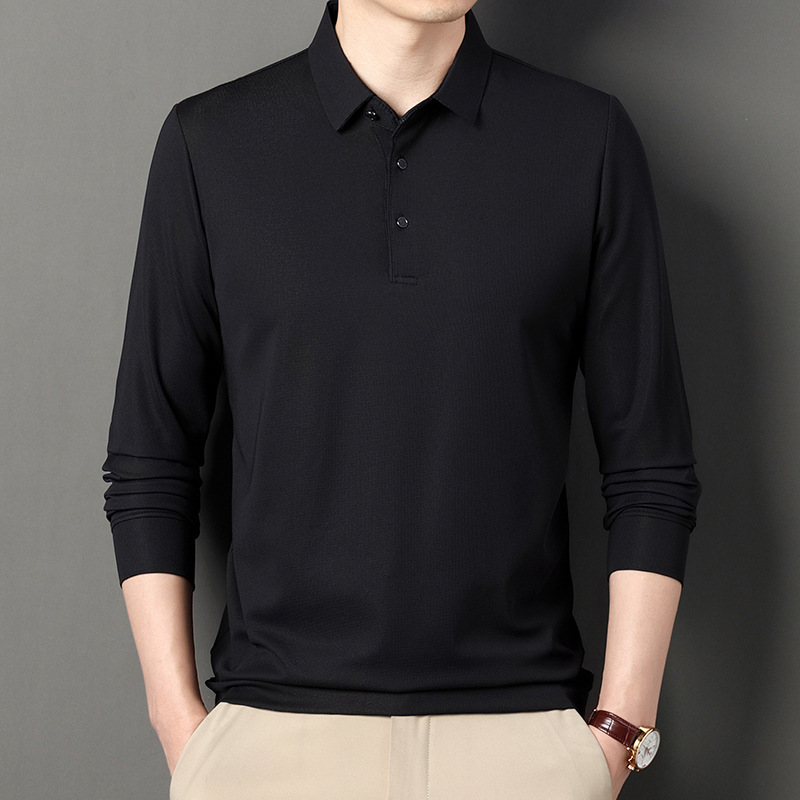 卸売お父さん服春と夏の長袖ラペル中高年男性の薄い無地トップスカジュアルルーズ Tシャツポロシャツ