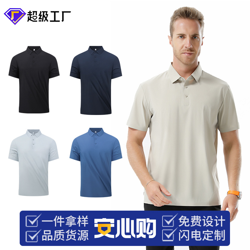 【速乾POLOシャツ】氷糸夏カジュアルPOLO男性半袖襟折り弾力爽やか通気上着