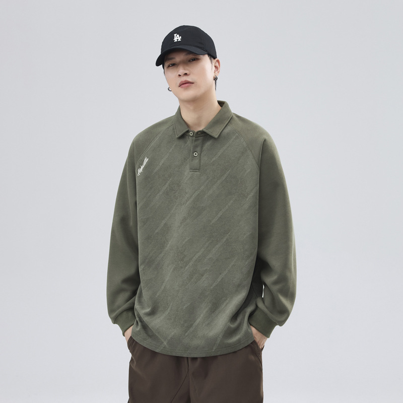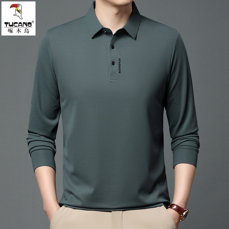メンズ長袖ポロシャツ、ビジネスカジュアル、厚手無地、秋冬用インナーシャツ、長袖ラペルTシャツ