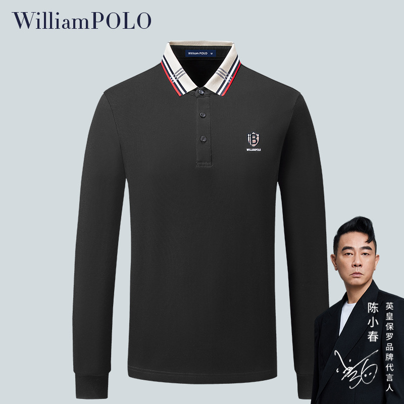 英皇ポールハイエンドメンズブランド秋長袖刺繍ポロシャツメンズカジュアル高級感ラペルtシャツ