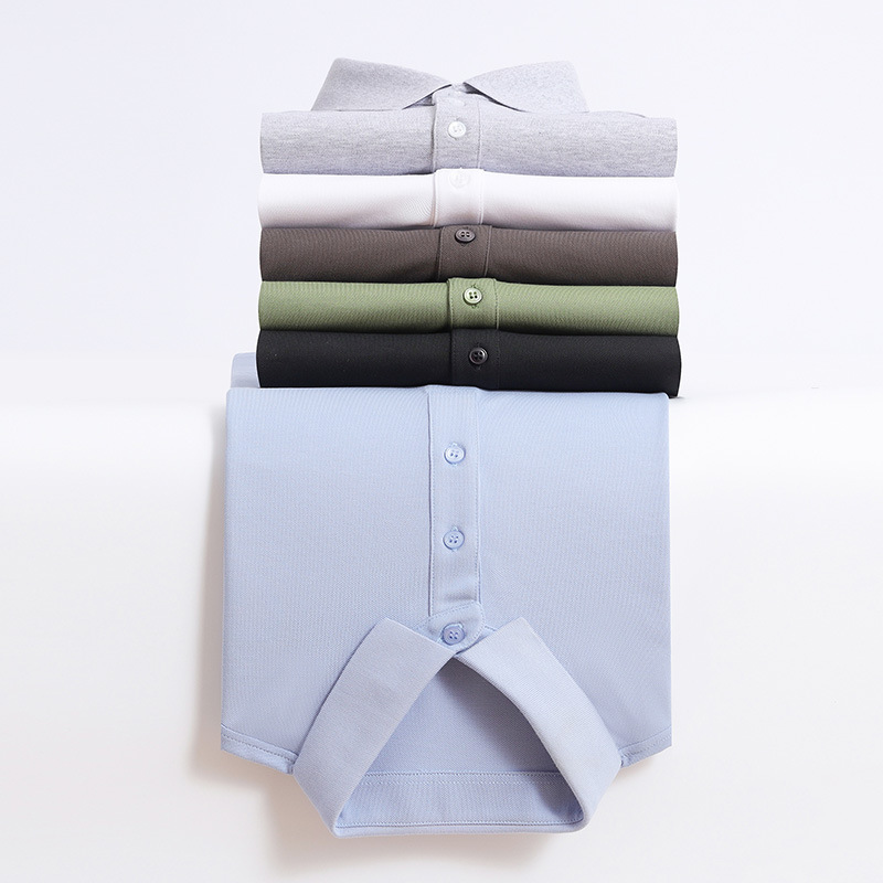 高級氷糸poloシャツ半袖男性軽ビジネス襟tシャツ夏氷糸修身半袖純色百合
