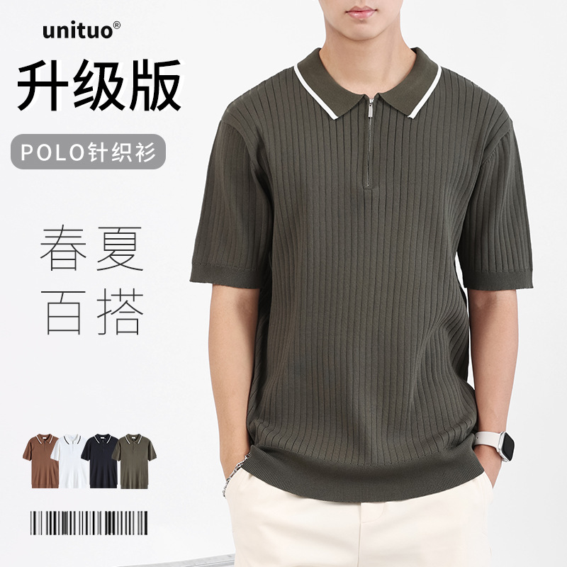 メンズアイスニット半袖夏ポロシャツメンズ高级感ビジネスカジュアルリードポールtシャツ男