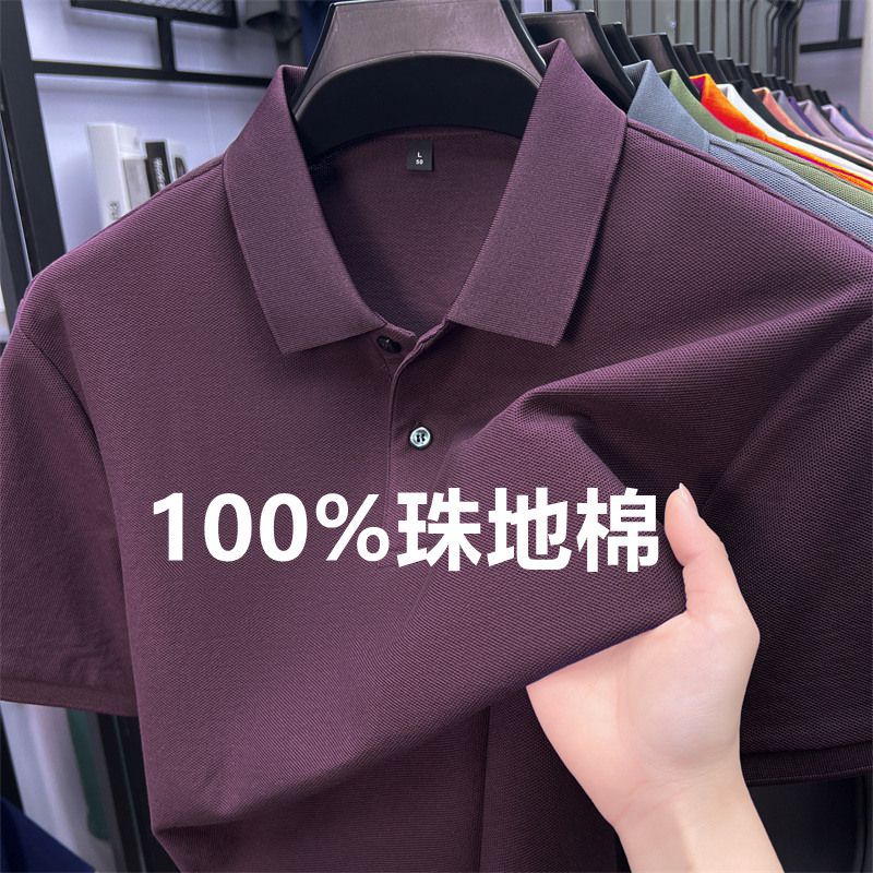 【瞬間涼感】ソロナポロシャツ男高級新疆綿折り襟無痕ビジネスカジュアル半袖tシャツ