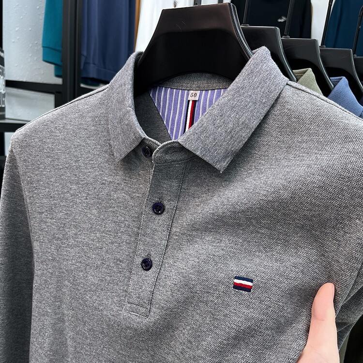 クロスボーダーpoloシャツ春秋新作純色刺繍ファッションブランド男性襟折りカジュアル長袖通気tシャツ男性卸売り