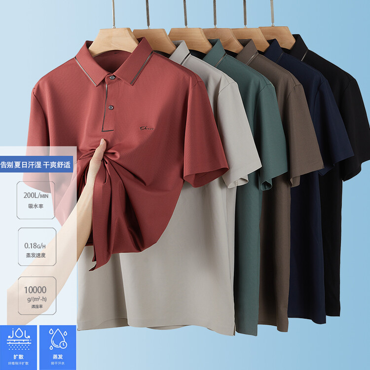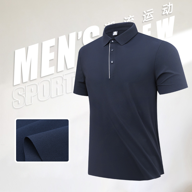 ポロシャツ高级感メンズビジネスシームレスアイスtシャツメンズ折り襟ゆったり印字トップス潮半袖フィットネス