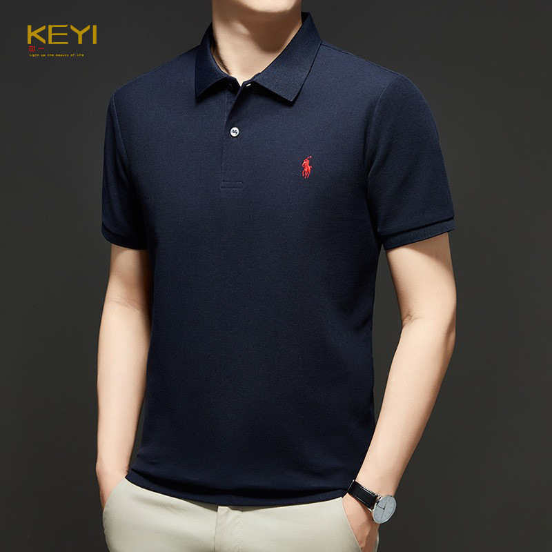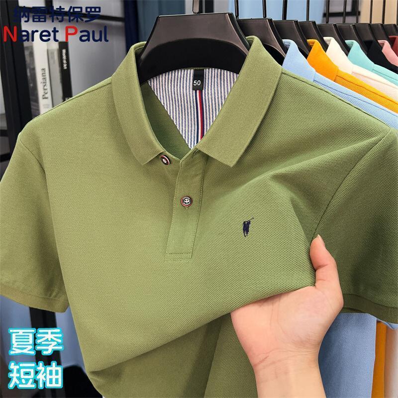 ビジネス対外貿易シャツ襟夏刺繍ラペル紳士服半袖 Tシャツ大きいサイズポロトレンド無地ドロップシッピング