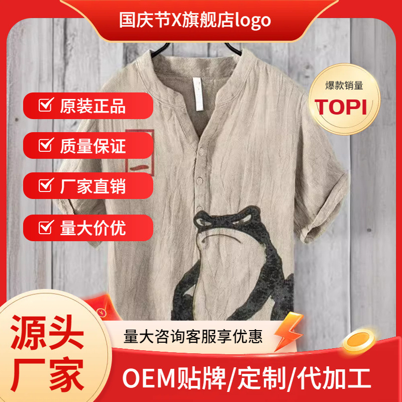 2025国境を越えた新しい夏の男性半袖tシャツ欧米の男性服と帽子の上着の対外貿易アメリカのヘンリーのシャツ