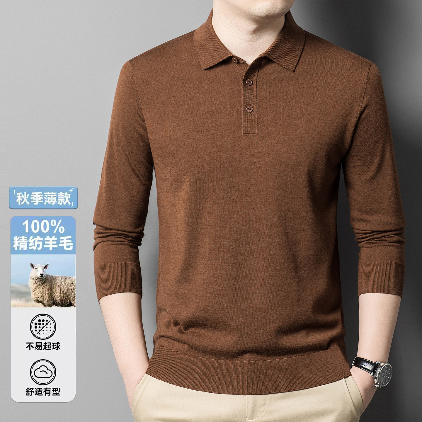 【オーストラリアの毛80本】100% 精紡ウールのセーター男性の薄い襟のポロシャツの肌着のニットのセーター