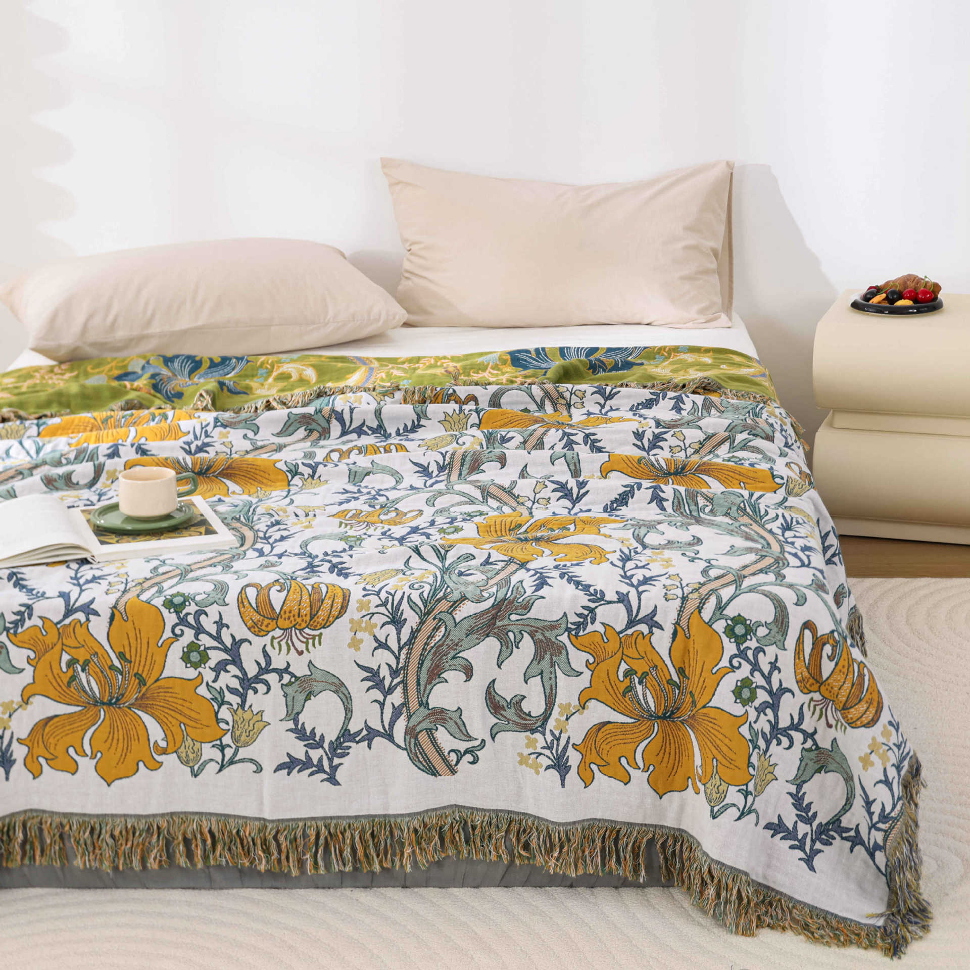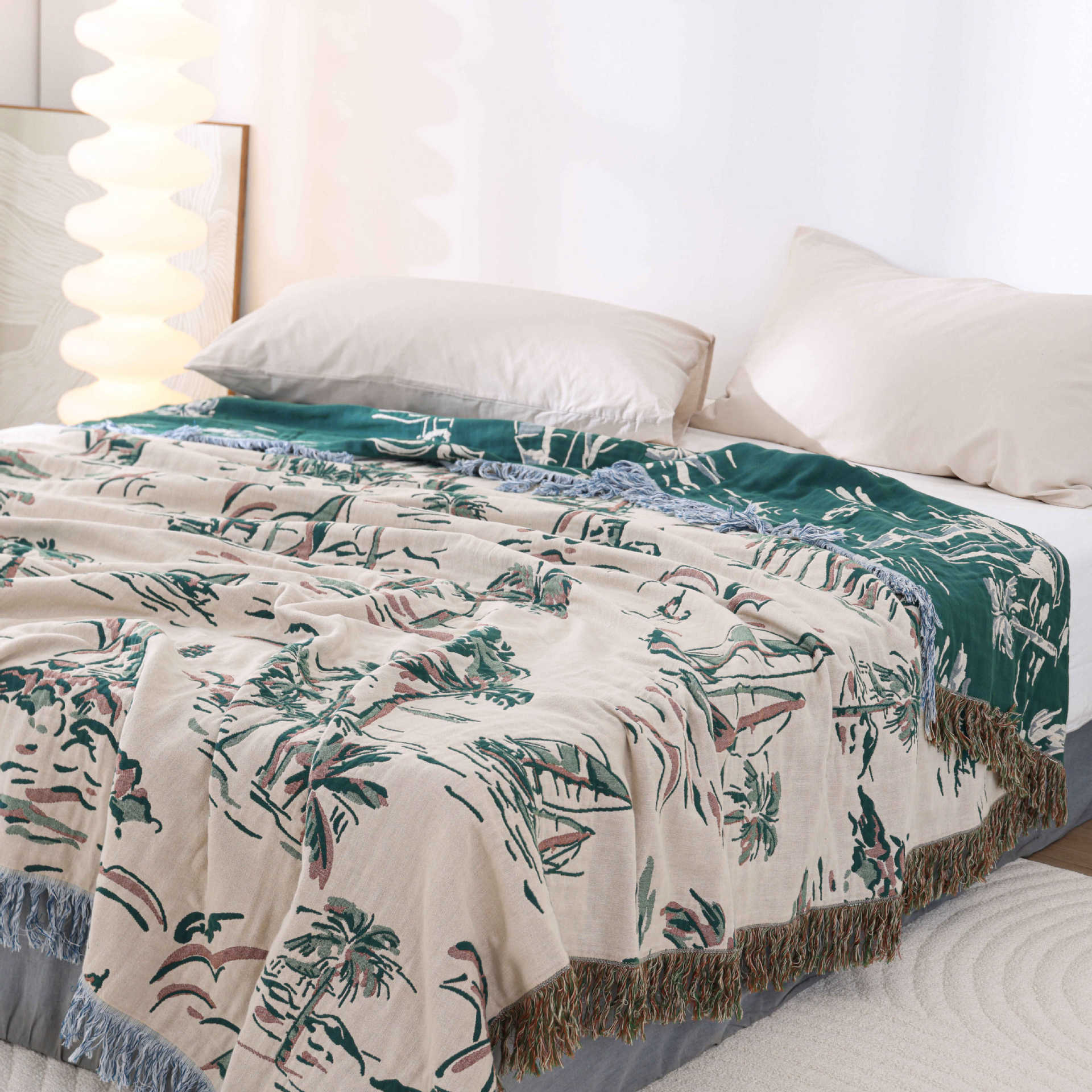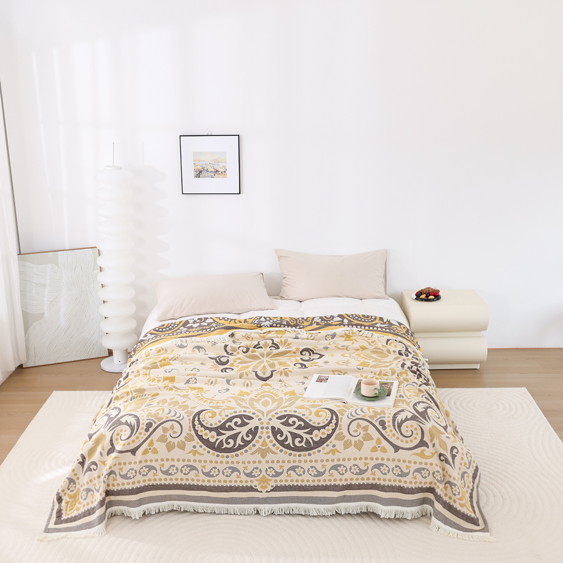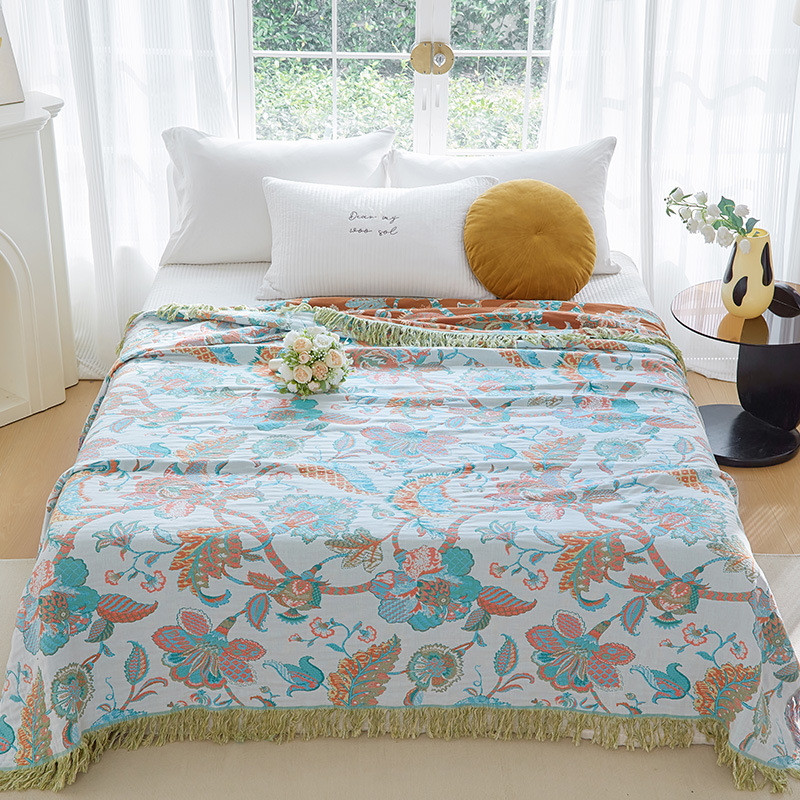 国境を越えた貿易純綿ガーゼベッドカバーソファブランケットタオルエアコンブランケット夏クールキルトタッセルソファタオルカバーブランケット