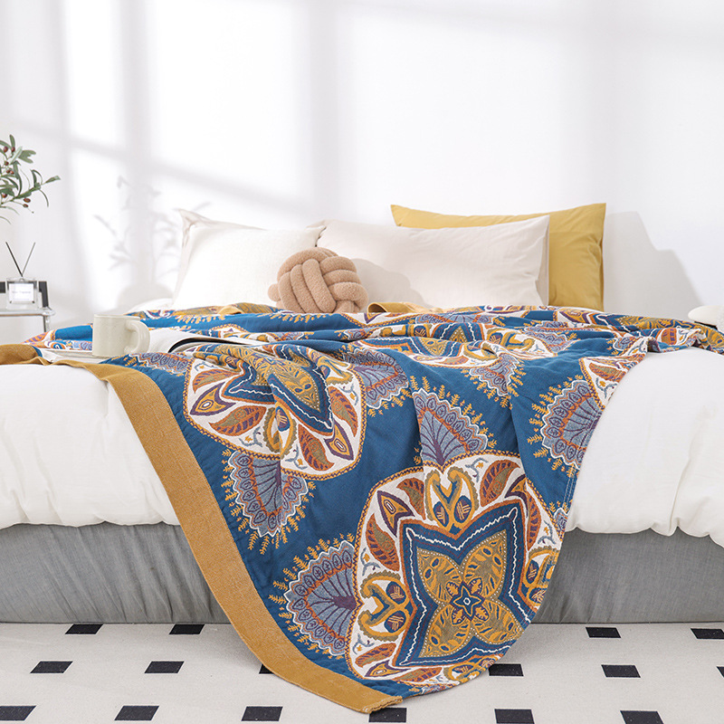 国境を越えた三層ガーゼの薄い毛布毛布ソファー毛布タオルはリビングのエアコン毛布ソファータオル北欧風