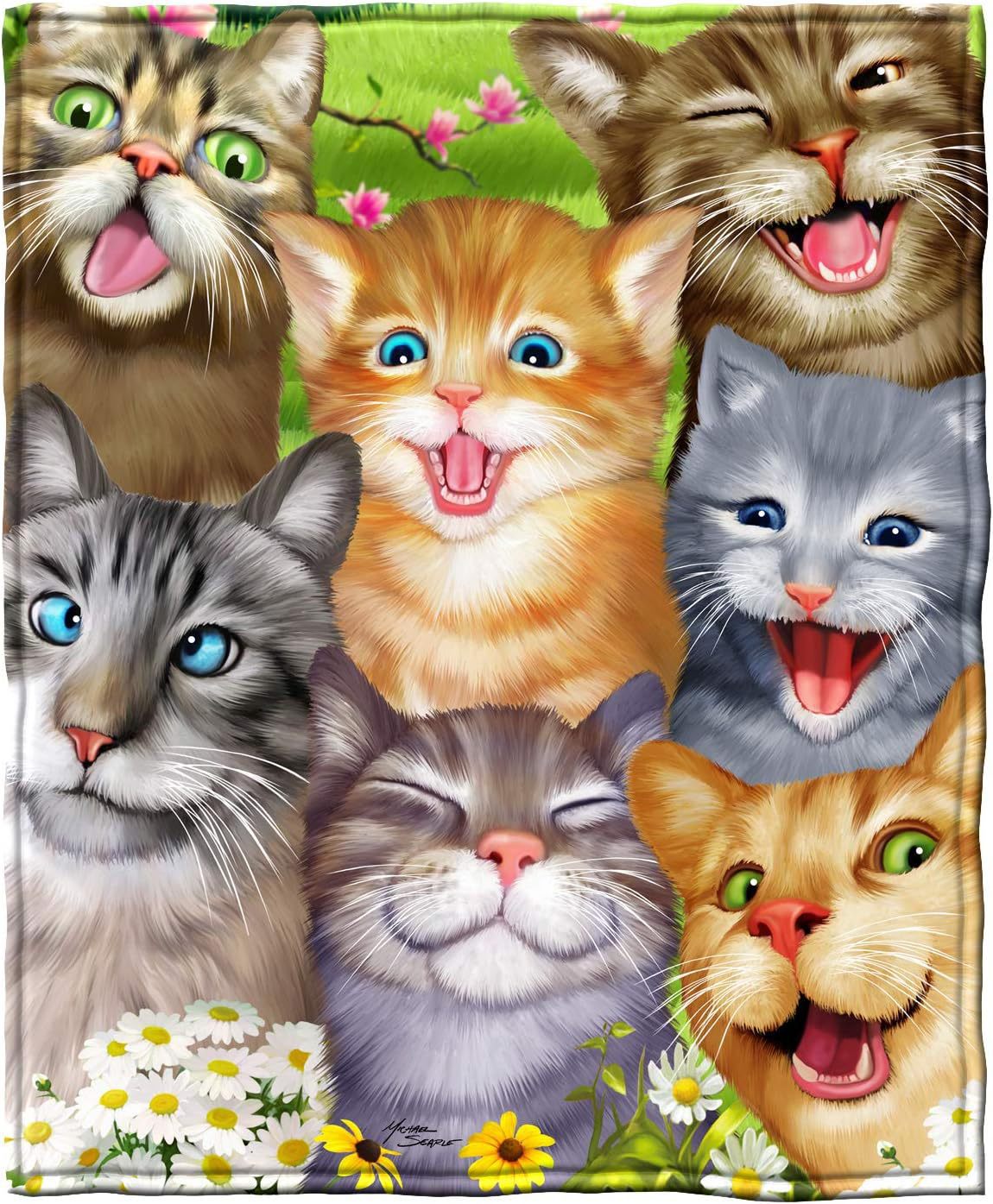 Dawhud Direct 漫画自撮り猫フリースブランケット - 特大スーパーソフトぬいぐるみ子猫スローブランケット - スーパー