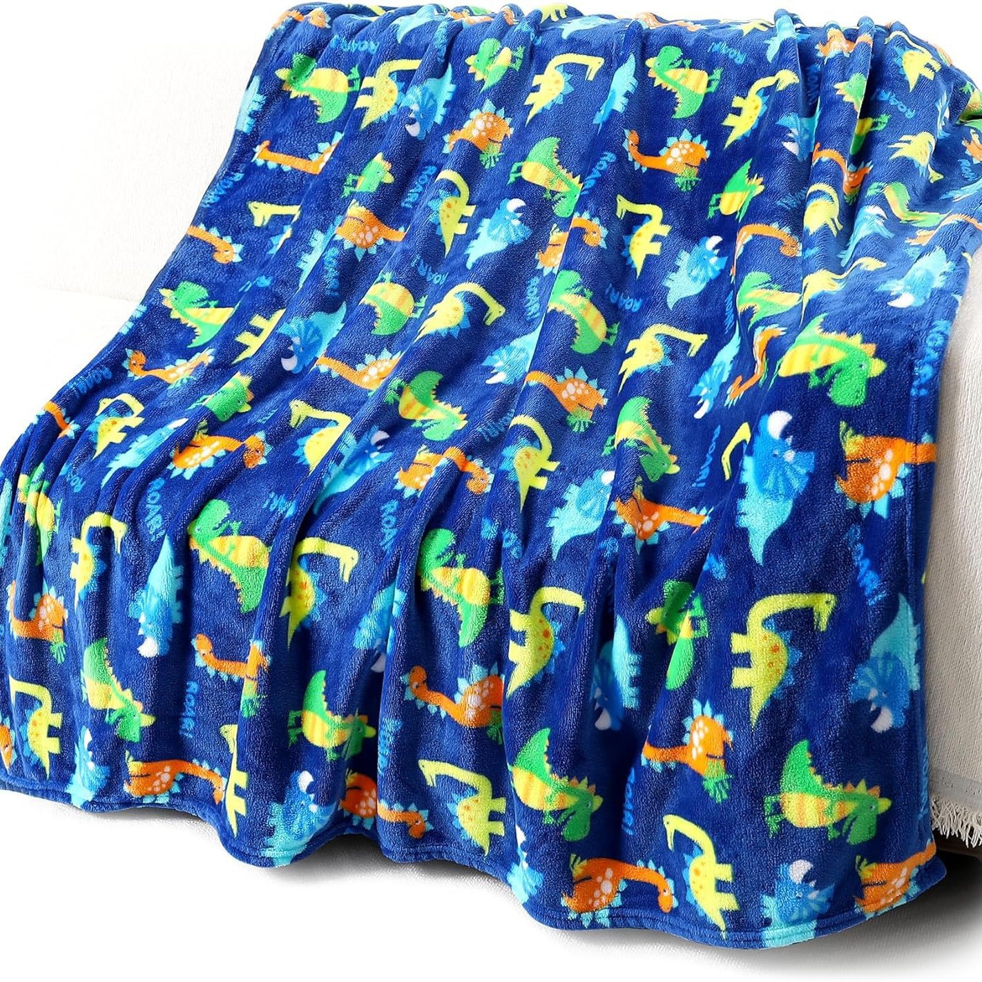 暖かくて柔らかい幼児ウール毛布、恐竜模様のプリント-快適なぬいぐるみフランネル子供の毛布