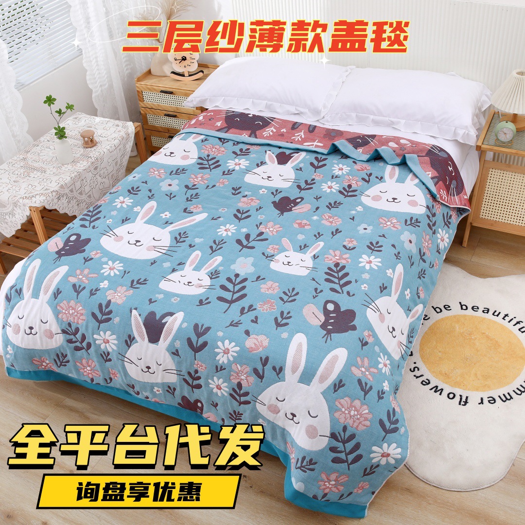 卸売三層ガーゼタオルケット、シングル・ダブル大人用綿シーツ、エアコン用夏用涼感キルト、昼寝用ブランケット、綿ガーゼ