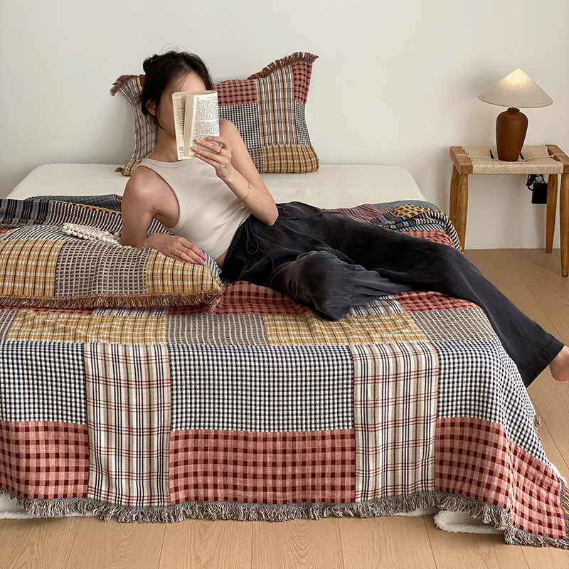 輸出アマゾン純綿ガーゼタオルタッセルソファタオルソファカバーブランケットヨーロピアンスタイルオールシーズンカバー可能