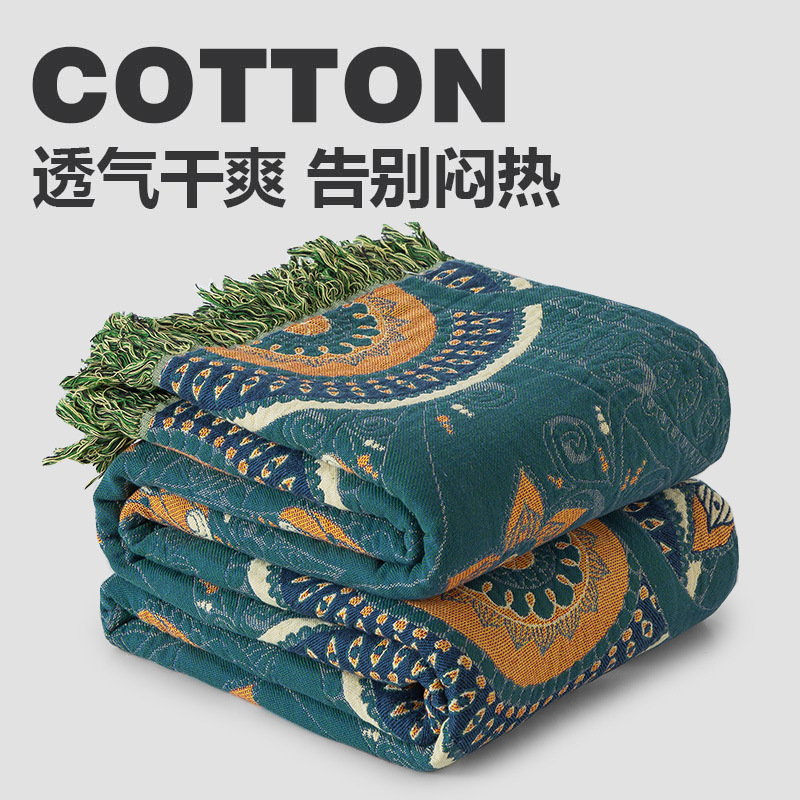タッセルガーゼブランケット新しい外国貿易4層純綿ジャカードソファブランケットエアコンブランケットは夏のタオルキルトを敷いてカバーすることができます