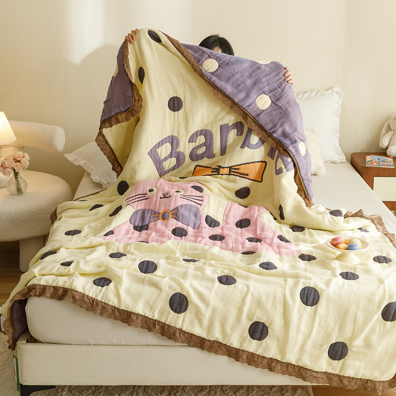 春と秋の10層ガーゼブランケット漫画綿タオルキルト厚みのあるシングルとダブルパフキルト純綿子供用小さなブランケット
