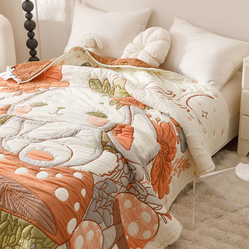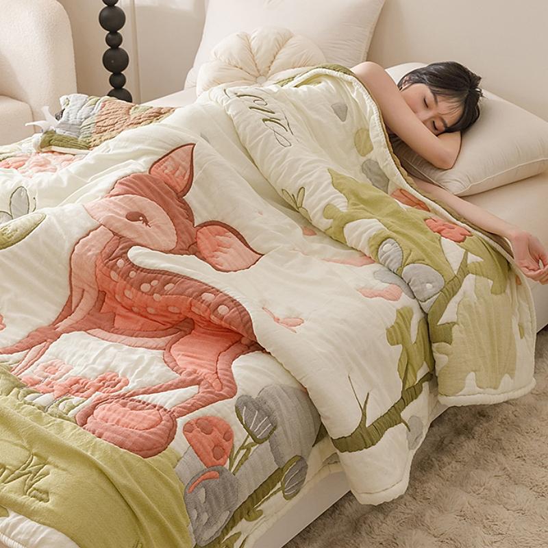 クリーム系高級韓国A級純綿ガーゼキルト 空調キルト ダブルコットン 春夏ソフトカバー 薄手キルト