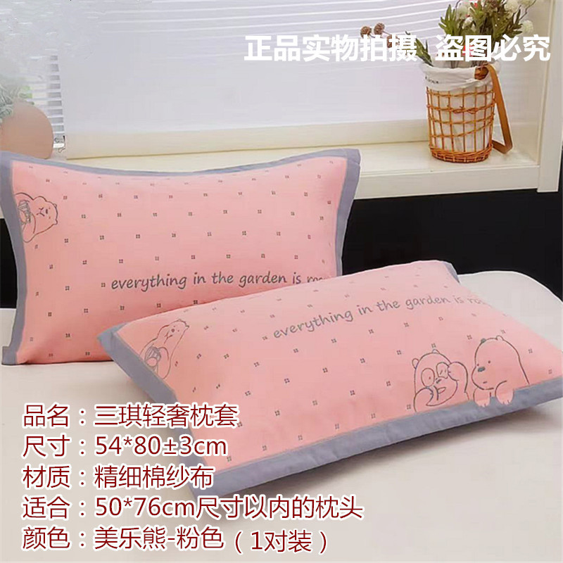 Sanqi ラテックス純綿ガーゼ封筒枕カバーペア、家庭用大人用の厚みのある枕カバー、通気性と吸汗性