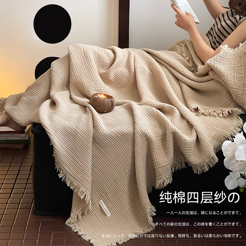 2025 新綿 4 層しわガーゼタオルレトロタッセルソファタオル子供昼寝ブランケットクロスボーダー