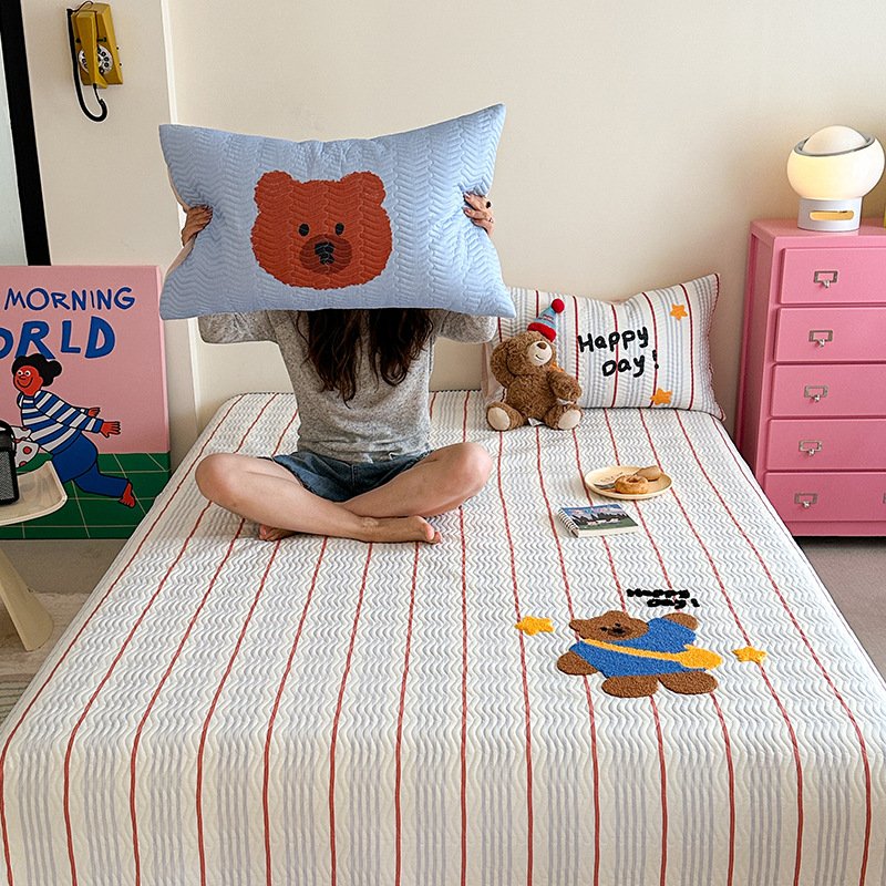 韓系純綿のベッドカバー三点セットの柔らかい肌に厚いシーツの四季通用畳のオンドルカバーの滑り止め