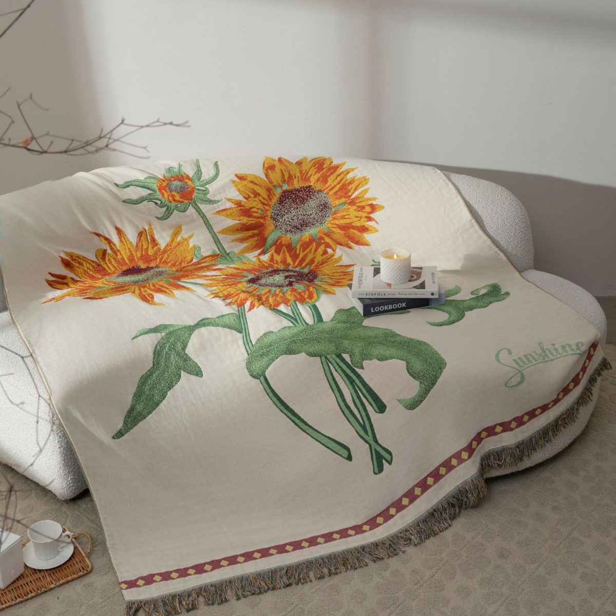 中古ひまわり純綿四層ガーゼブランケット多機能ブランケットベッドシーツベッドカバーソファタオルソフトタオルキルト
