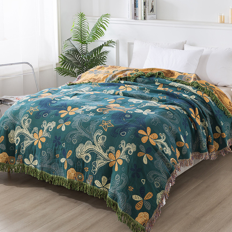 花柄純綿四層ガーゼブランケット多機能ブランケットベッドシーツベッドカバーソファタオル柔らかく通気性のあるタオルキルト