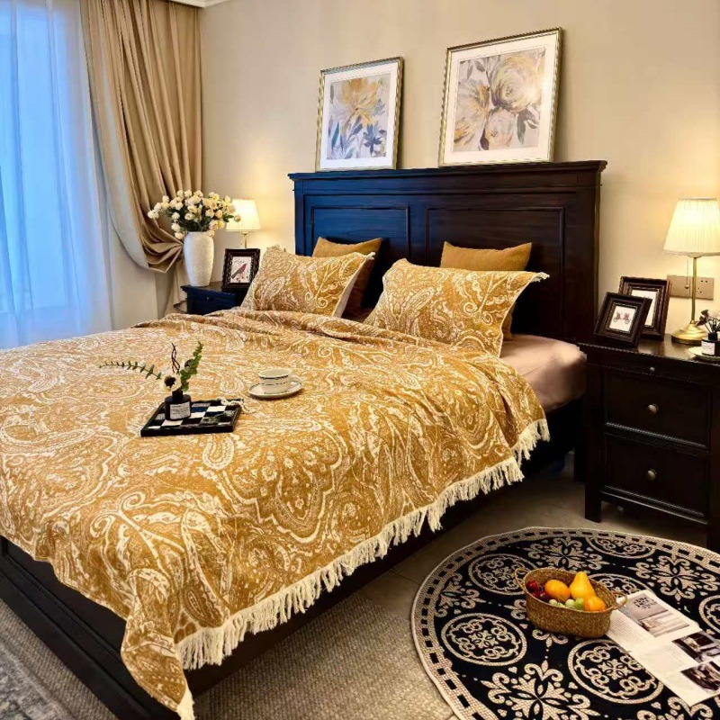 輸出アマゾン純綿ガーゼタオルタッセルソファタオルソファカバーブランケットヨーロピアンスタイルオールシーズンカバー可能