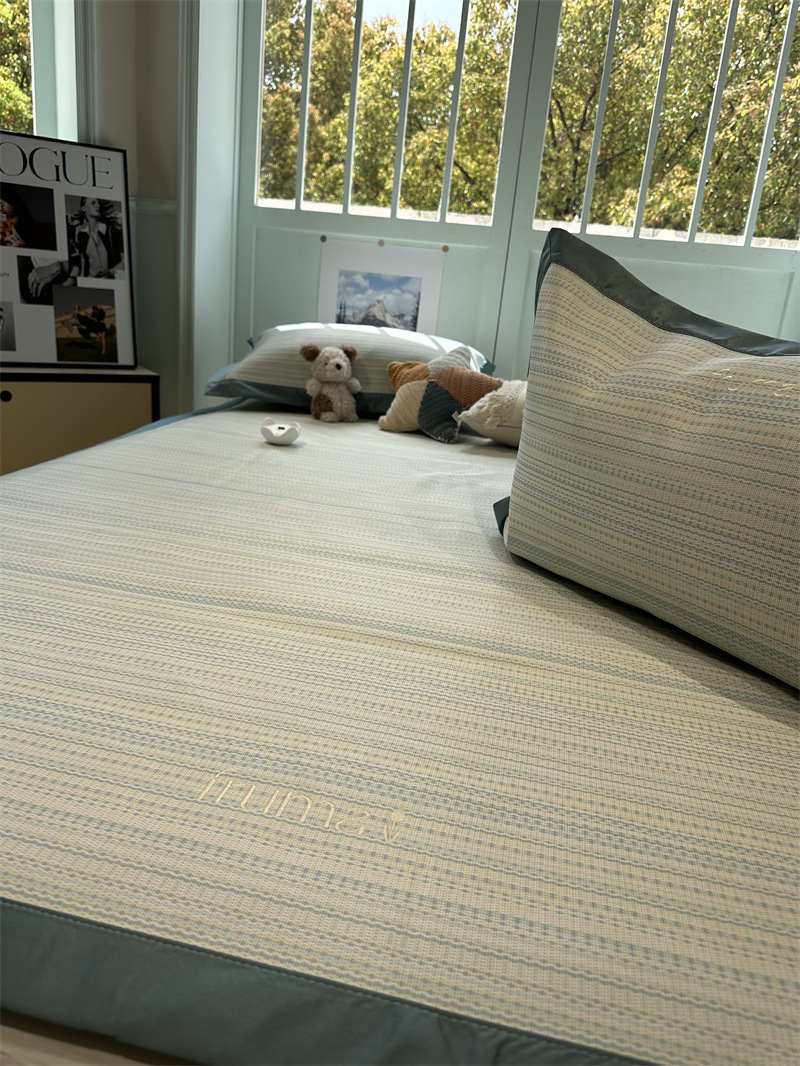シンプルな緑の縞模様の氷藤席母子級夏凉席三点セットのエアコン席1.5m1.8メートルの機械洗浄ができる