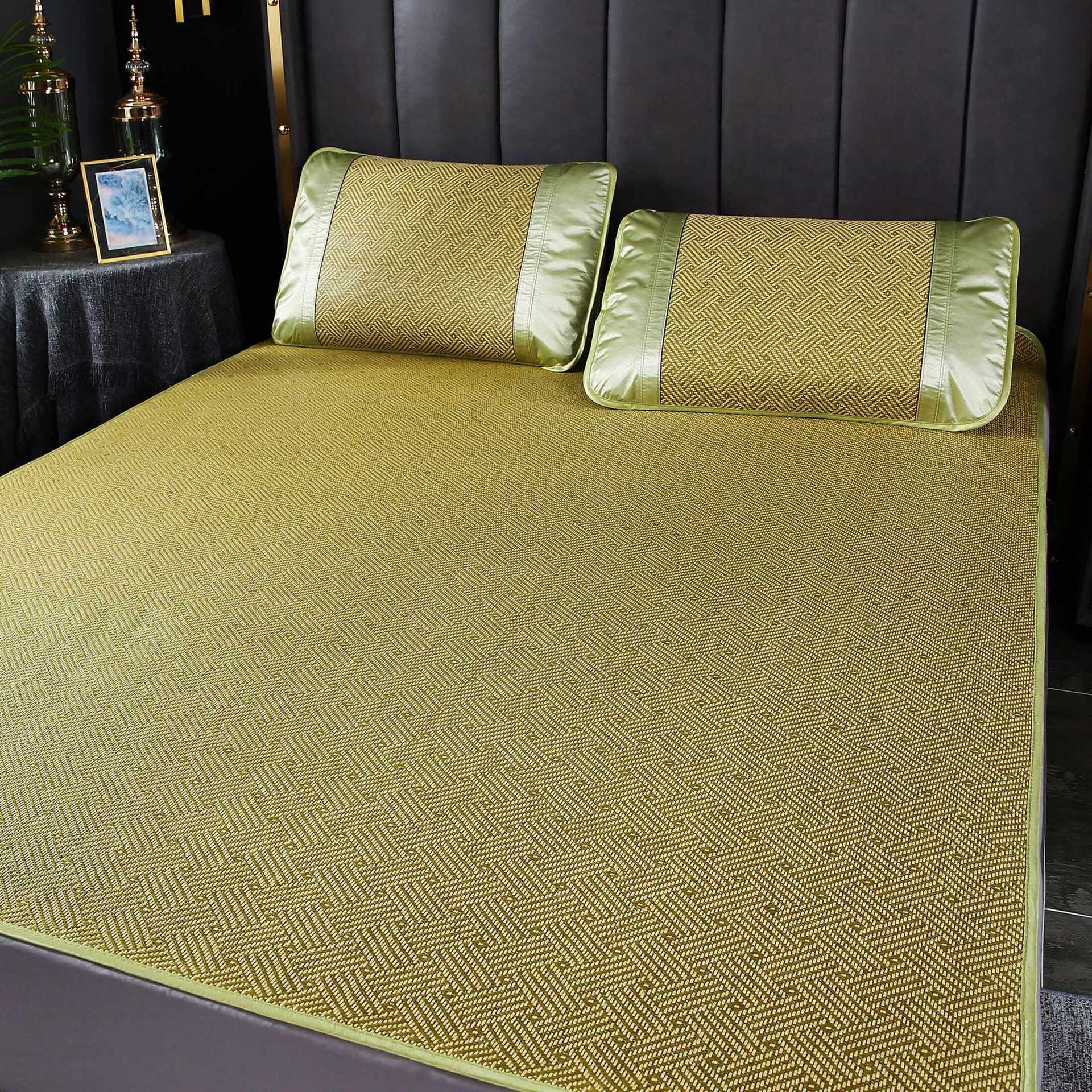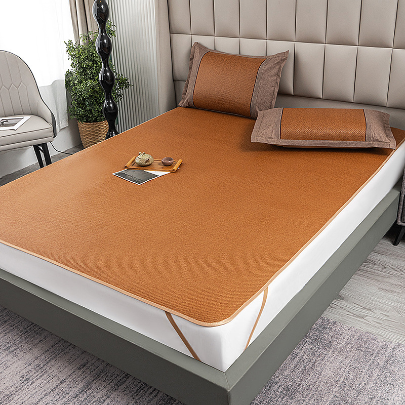 籐マット夏マット純粋な籐マット夏天然わらマットアイスシルクマット枕カバー 3 点セット家庭用竹マット卸売