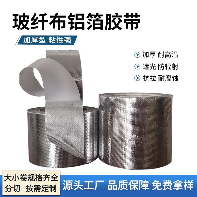 厚みのあるグラスファイバー布アルミ箔テープ、高温耐性、耐引裂性、レンジフード、ストーブパイプ巻き、グラスファイバーアルミ箔テープ