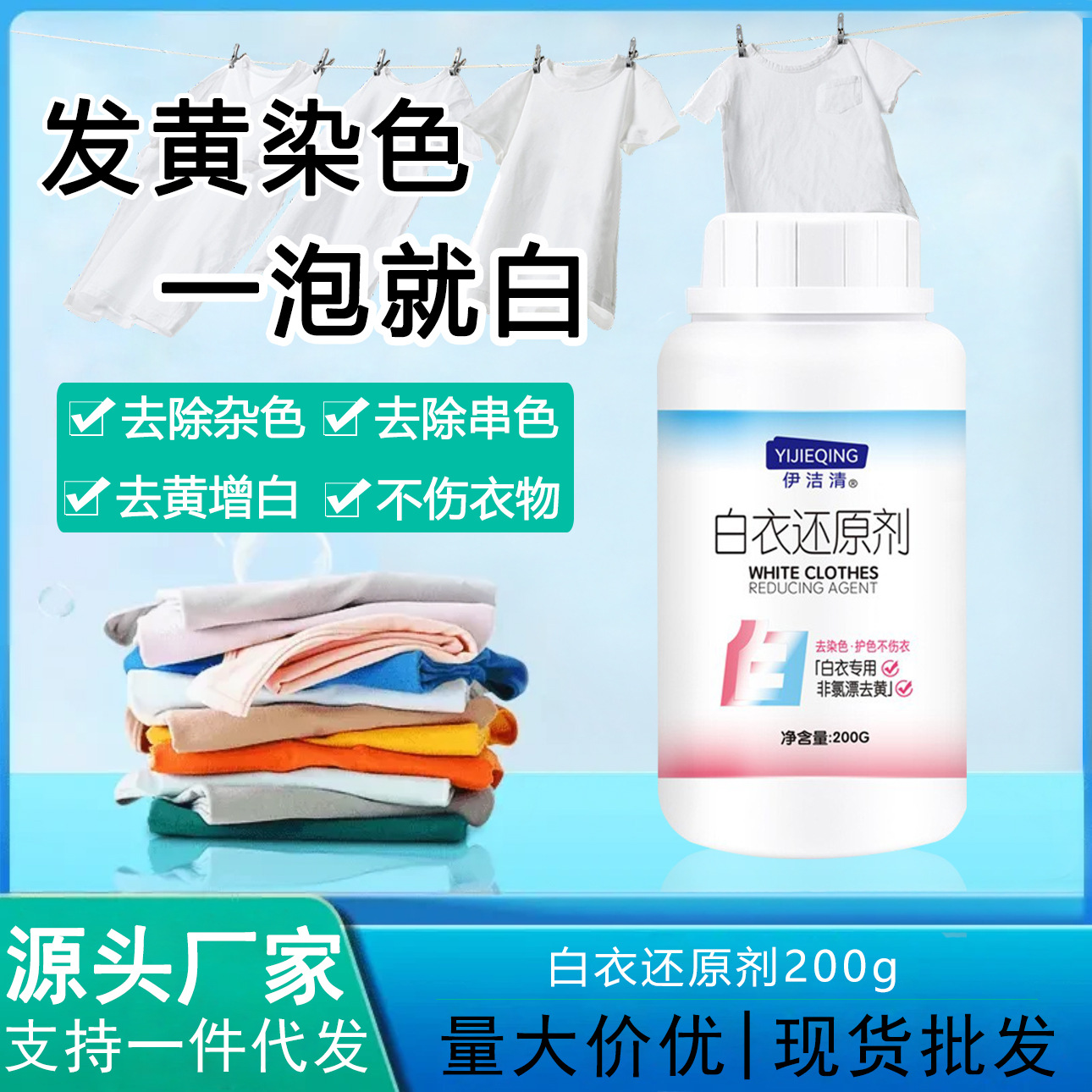 伊潔清白衣還元剤白い服は黄増白を塗って染色します。