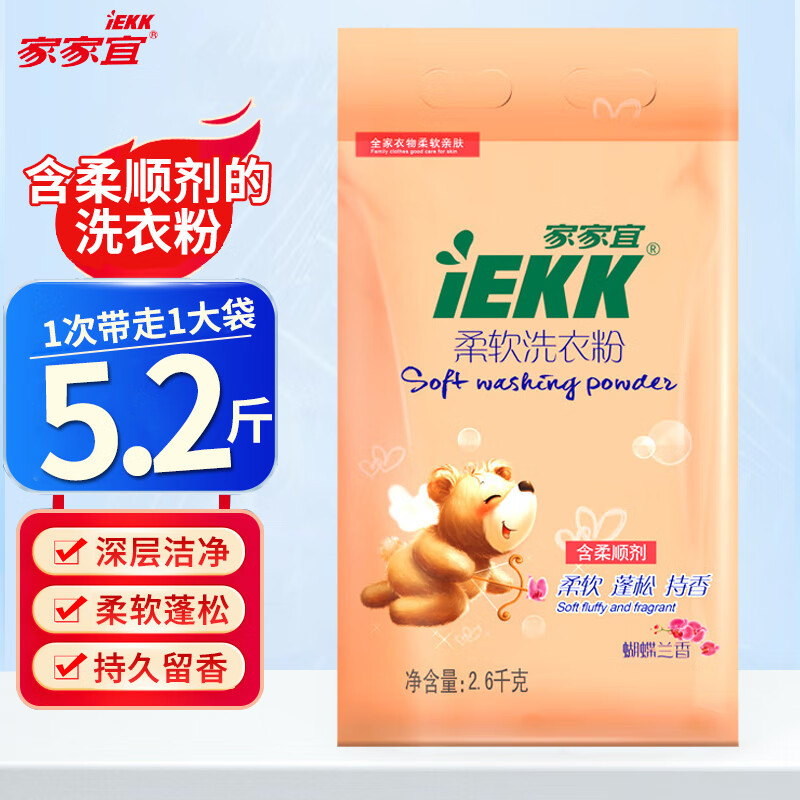 Jiajiayi ソフト洗濯洗剤 2.6kg 香り長持ち 家庭用大型袋 洗濯機で洗える洗濯洗剤 卸売可能