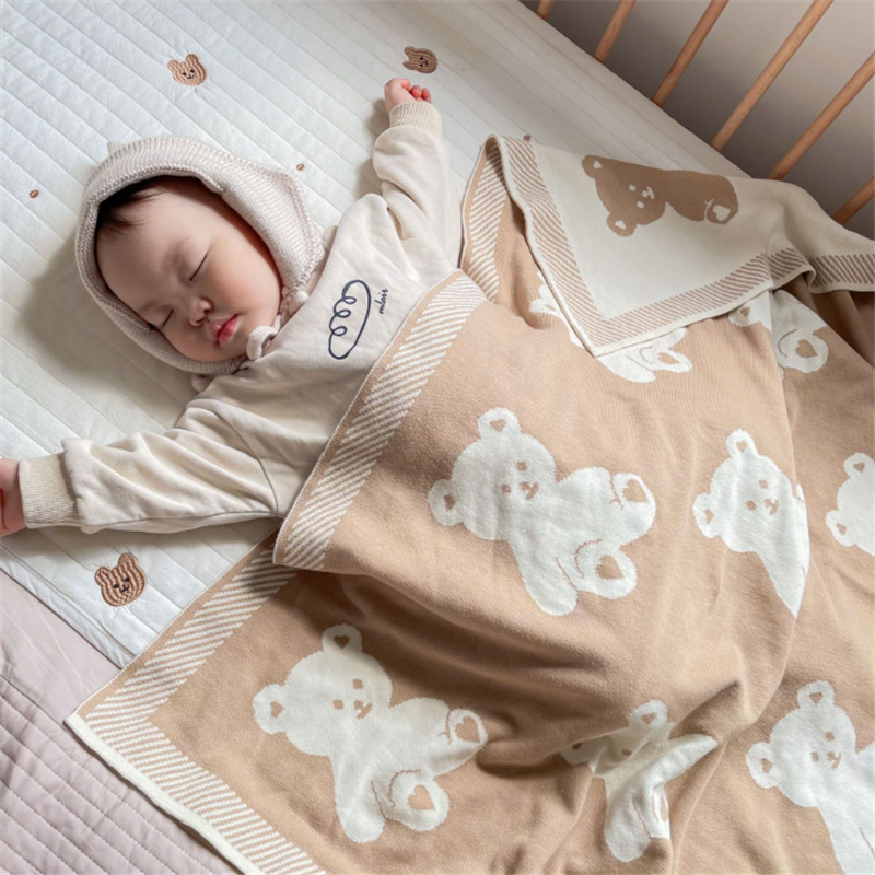 Ins韓国熊ニット毛布新生児赤ちゃんカート毛布抱っこ赤ちゃん室内昼寝エアコン毛布